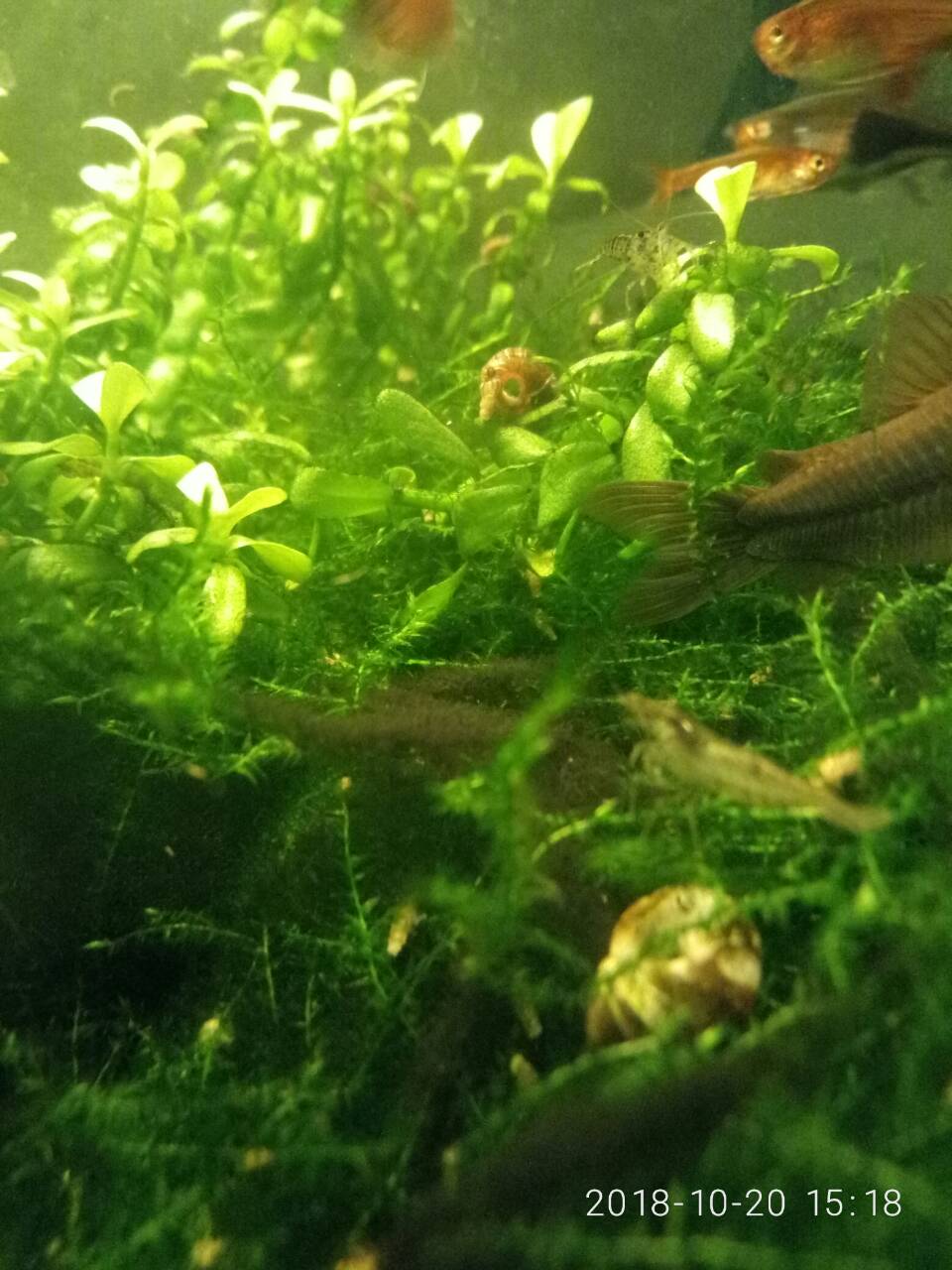 Живность: галактика, тетра аманда, расбора клинопятнистая, крапчатые и креветки.