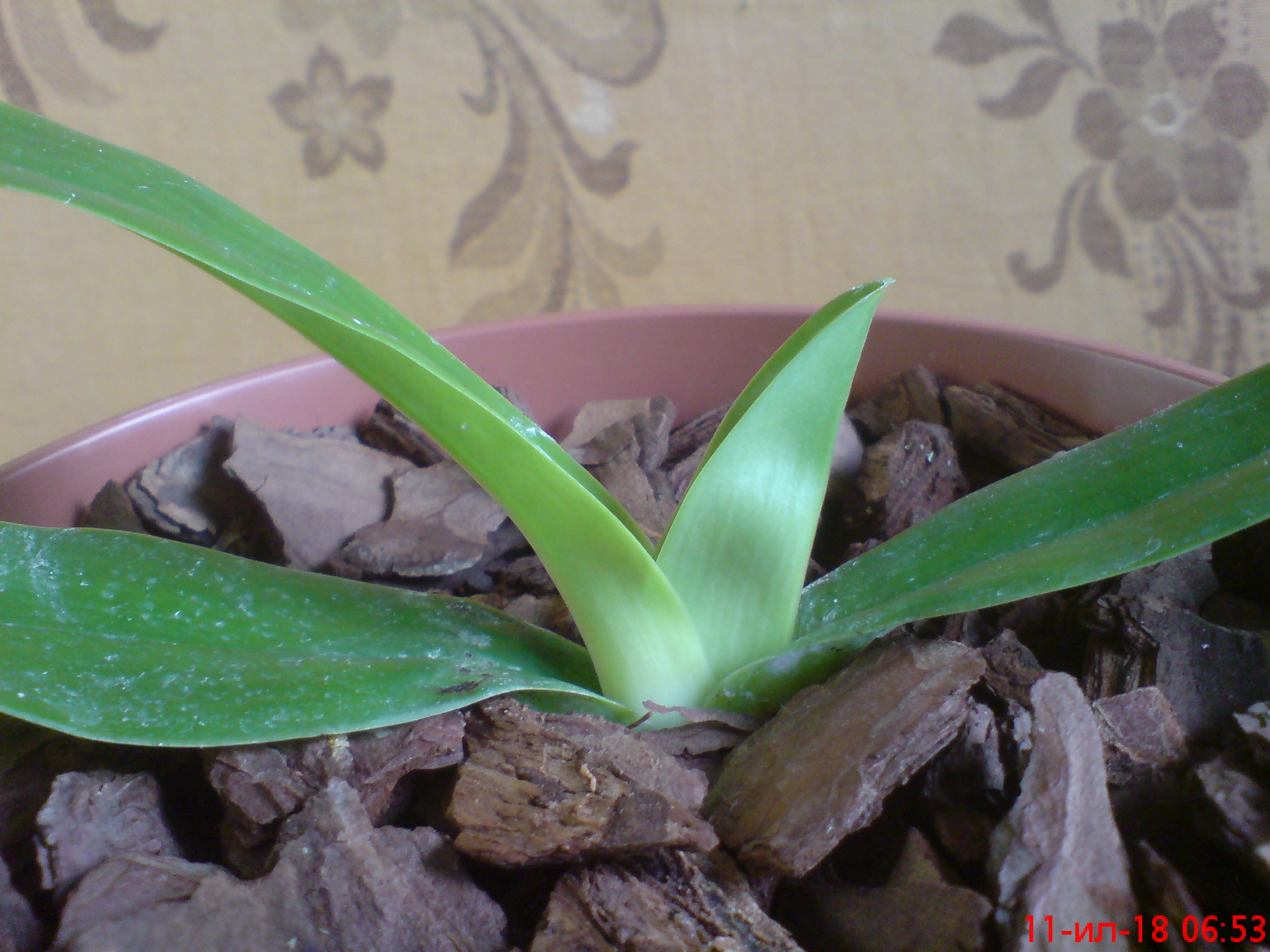 Paphiopedilum Angel Hair через 3 недели после посадки пошел расти новый лист