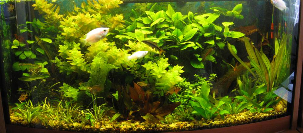 Растения - густо засажен эхами + большой куст апоногетона + большой куст гидрофилы (у меня там карликовые гурами тусуются - убирать не стал) + 2 больших анубиаса (корневище по 40 см).