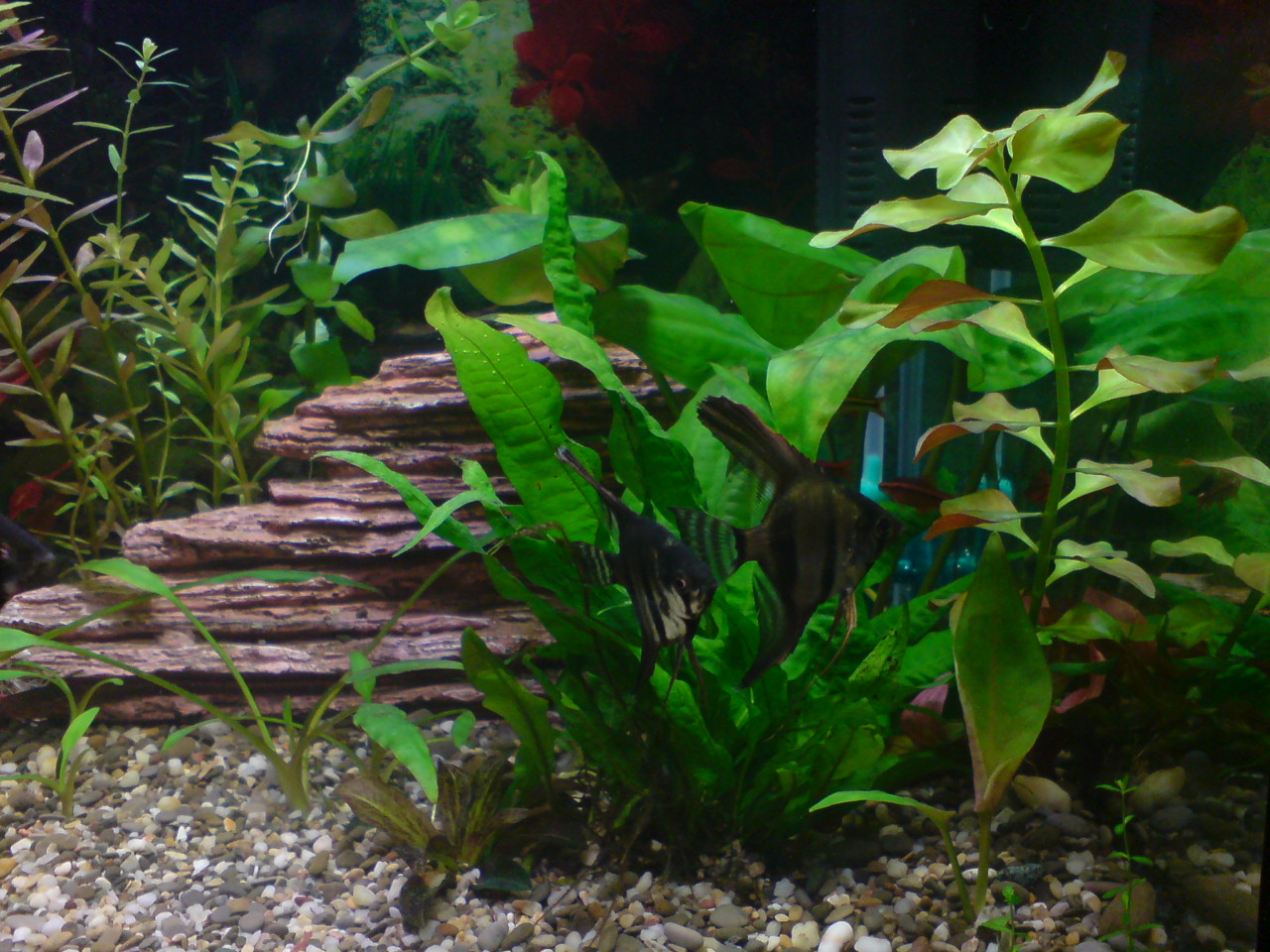 Потом прикупил 7 леопардовых данио (1-й не стало) и 4 черных скалярии. Последние очень оказались темпераментными и обжорливыми.