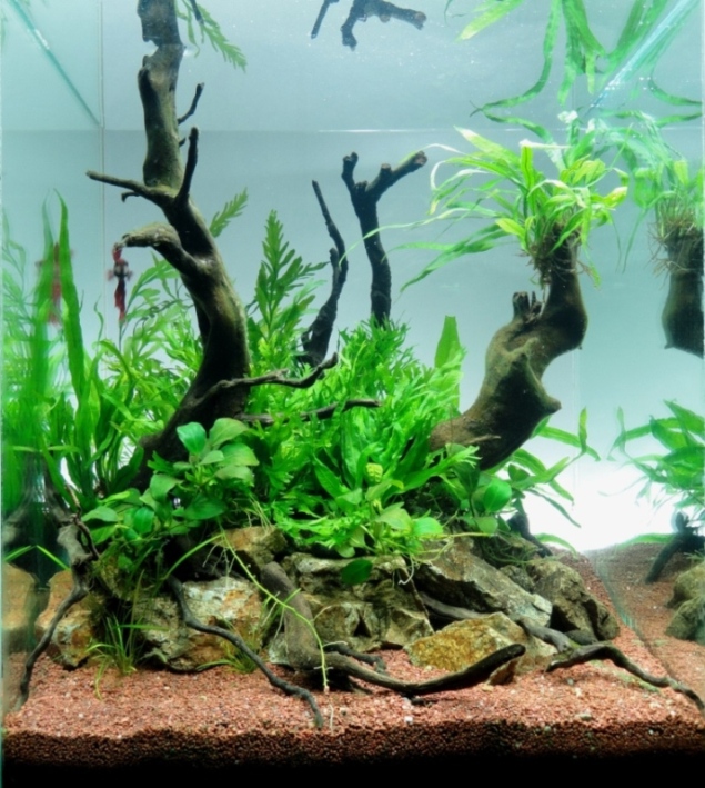 Растения: Дидиплис двутычинковый, Эхинодорус тенеллус, Элеохарис крошечный, Папоротник тайландский '' Windelov '', Болбитис, Анубиас, Марсилия.