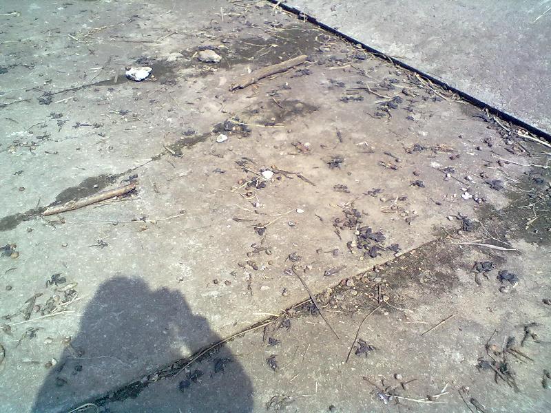 Последствия сброса воды в Днепре, дабы уберечь от паводка застройки, изуродовавшие его русло... Расплата за чью-то красивую жизнь с яхтами у воды: пересохшие канавы, ручьи, речушки, которые на моей памяти за последние 20 лет ни разу весной не были в таком состоянии. И гибель сотен тысяч живых существ: лягушки, раки, рыба, моллюски...