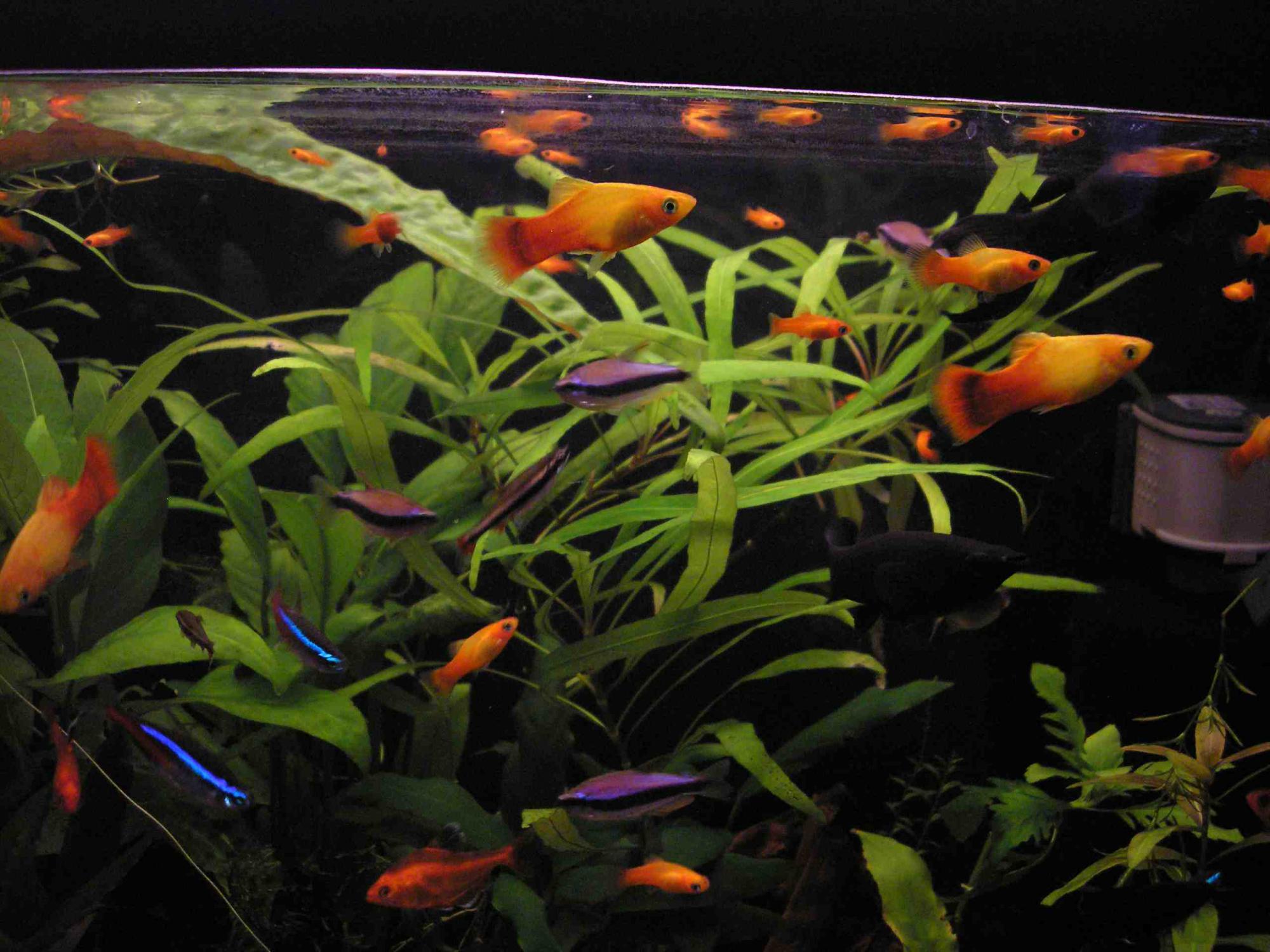 Дико нравится за ними наблюдать в сумерках (енто когда основное освещение выключено и остаётся лампа накаливания 25Вт), - зрелище фантастическое, пецилии словно светятся...