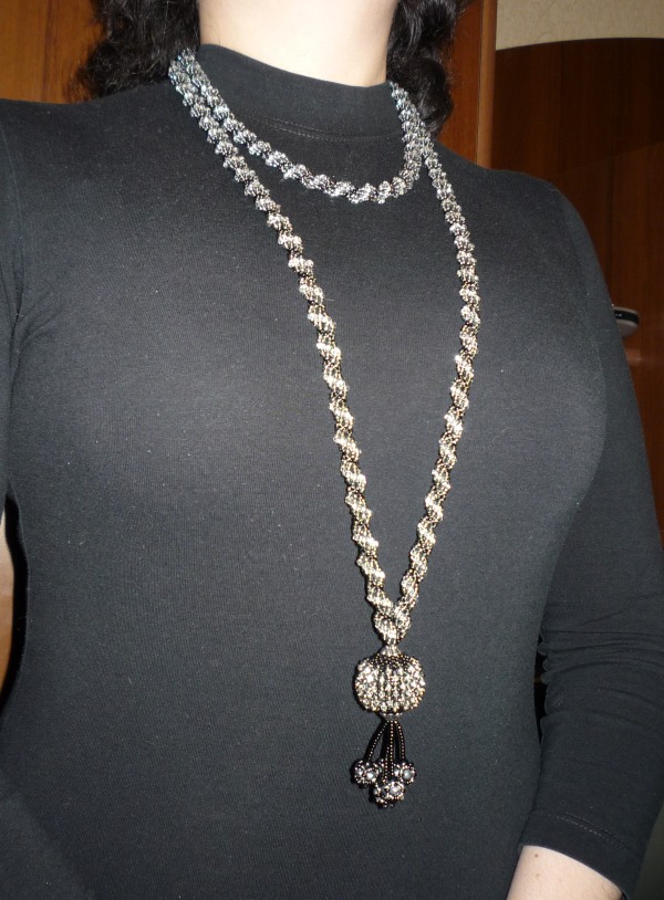 При желании короткий жгут можно носить отдельно, как самостоятельное украшение. На застёжке имеется удлинительная цепочка.