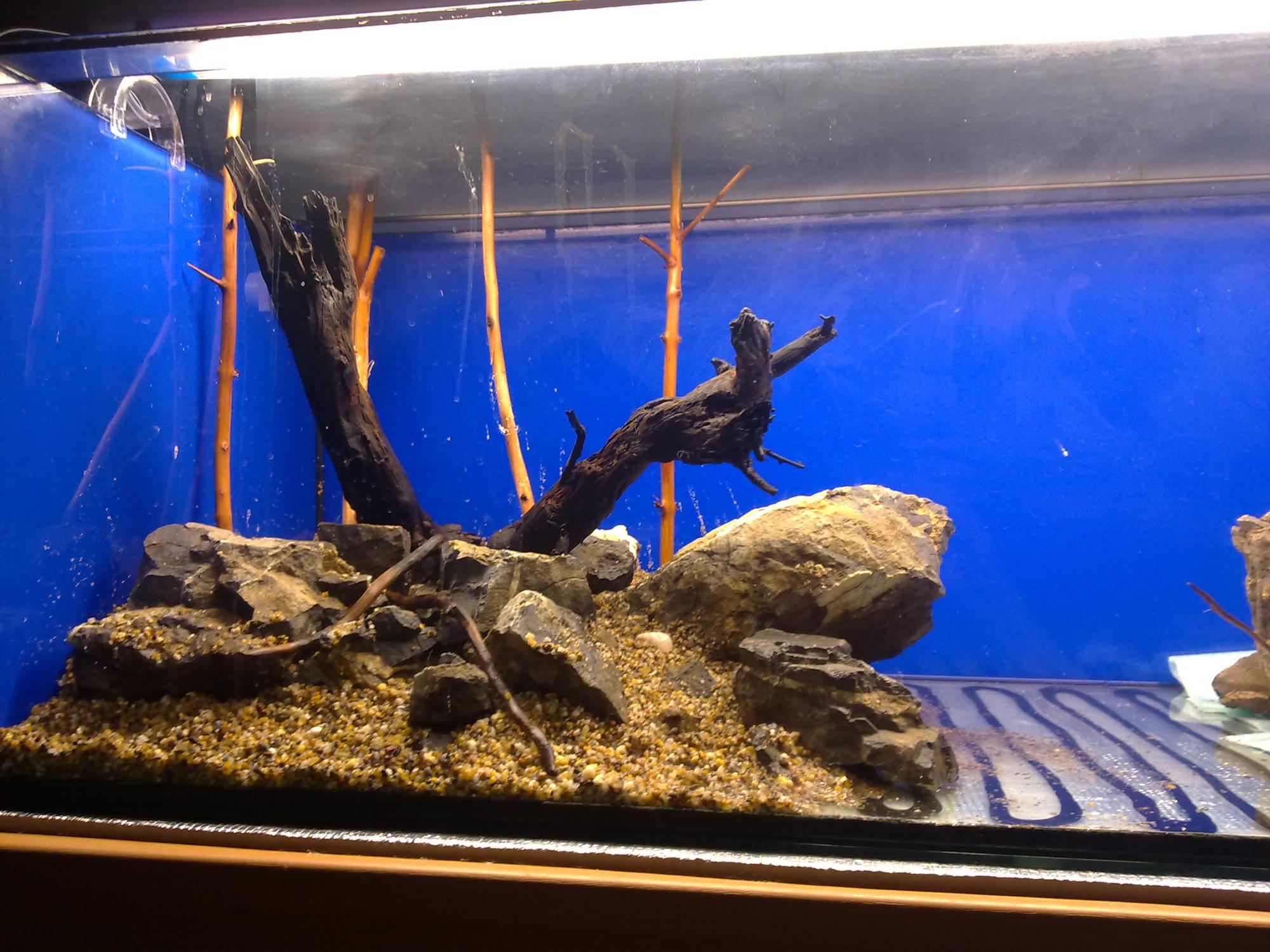 Решил выложить развитие своего нового скейпа.Т.к. из-за семейных обстоятельств пришлось свой морской аквариум обезвредить,то решил в морской банке попробывать осуществить свою задумку под названием "Тишина".Вот фотки на сегодняшний день.Хардскейп готов на 60%.Жду сейчас приезд грунта и растений.