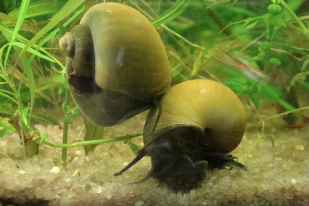 Ракушки у этих улиток желтые а тело синее, что создает интересный оливковый оттенок.