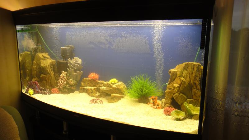 Всем привет, выкладываю свой первый большой аквариум для критики. Когда заказывал аквариум - хотел сделать растительный с кучей мелких рыбок, для этого сделали мне достаточно неплохой свет 6 ламп Т5 по 59 Вт, но со временем решил кардинально поменять направление на малавийский цихлидник по типу псевдоморя.