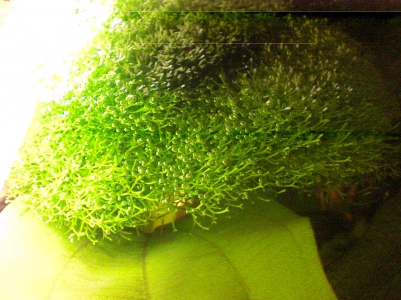 1. Риччия (Riccia) – ещё одно распространённое аквариумное растение класса печёночных мхов, которое подходит для размещения в аквариуме с ракообразными. Большинство представителей рода риччии – наземные растения, произрастающие на влажных почвах возле водоёмов. В аквариумистике же используется вид Риччия плавающая (Riccia fluitans L.). Естественная форма Риччии плавающей – разрастающийся у поверхности воды таллом («тина» из переплетённых между собой веточек, не имеющих стебля и листьев). Однако для аквадизайна Риччию плавающую можно использовать и придонно, как самостоятельно сконструировав необходимые приспособления, так и купив «навороты» от известных производителей.