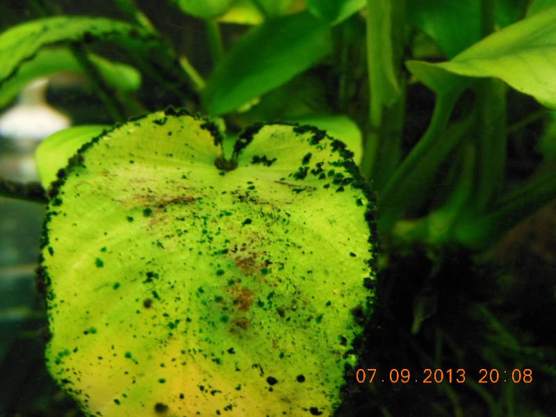 аква 500л населения дискусы-барбусы- отоциклюсы-сомики. свет 4-39вт т5\силваниягролюкс-аквастар. Aqua Medic T5 Reef White- Hagen Power GL\ две т5по 80вт-аквамедик Plant Grow-JBL Solar Tropic Ultra\ световой день 12часов -лампы горят по очередности-2-39+1-80 и т. д. появилась вот такая бяка .подмены 2раза в неделю\фильтры-х-5 и ейхем 2329.подача СО2. как с ней боротса и что ето такое.да параметры но3=15.ро4=1.5-2.железо=0.нитриты-амиак=0.пш-7