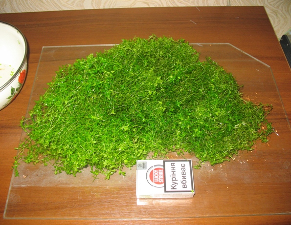 Длиностебелька: кабомба 3 веточки, сантиметров по 30, ветка октопуса и лимонника( лимонник вылез из воды, поэтому верхушка темного цвета), Людвигия-штук двадцать веток, 2 ветки щитолистника, островок ричии, размером больше ладони.