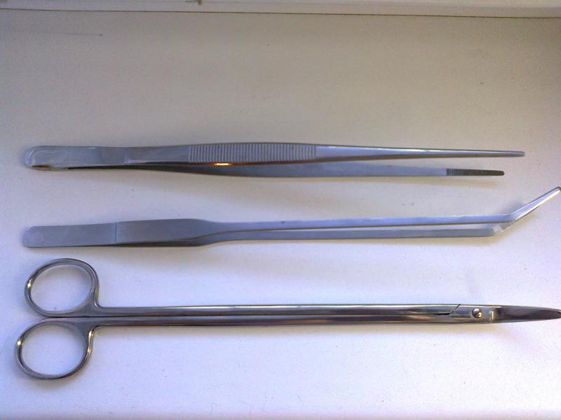Выставляю лот состоящий из : ножници изогнутые 28см (очень удобно делать подрезку),пинцет изогнутый 28см,пинцет прямой 26см. Нержавейка полированная отличного качества. Стартовая цена -