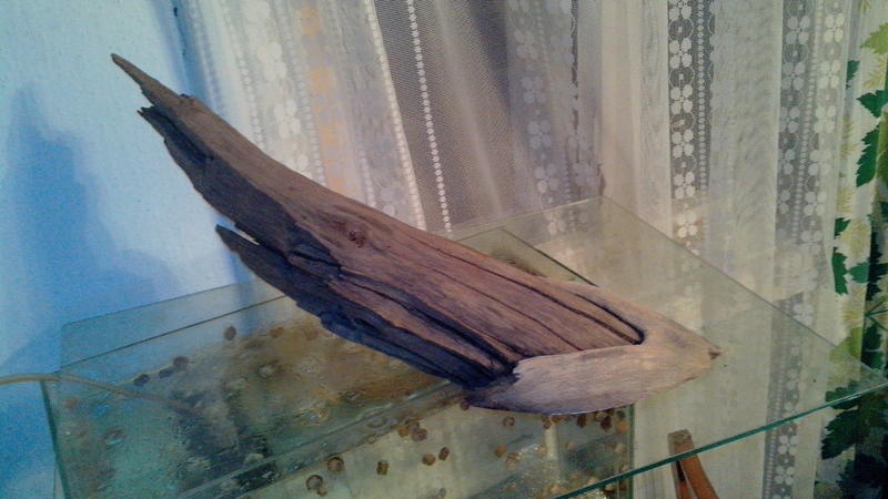 6. Коряга небольшая, древесина твердая, возможно слегка красит воду, похожа на поваленное бурей и сломанное дерево, размер ок.45*12*12.