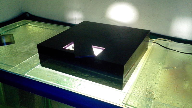 10. Крышка для наника б/у размером 30*30 из ПВХ(?) на две обычные лампы с меньшим цоколем, обклеена черным орокалом. Сделана аккуратно и качественно.