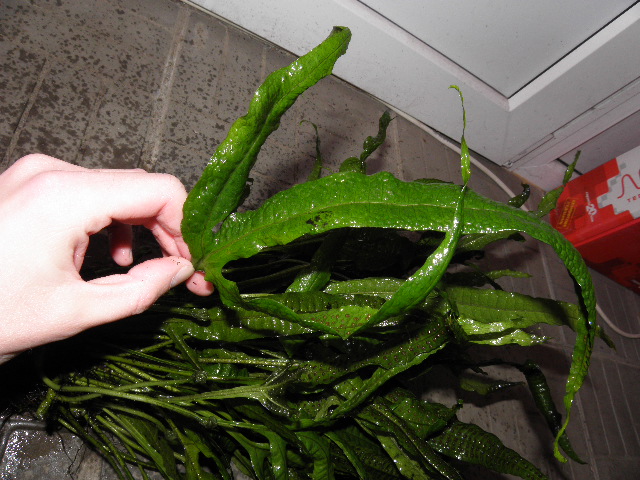 Дорогие форумчане представляю маточный куст Microsorum sp. "Three Leaves" растил больше года. Растение еще очень редкое на Украине. Пару аукционов уже продал но там было по 5 листов, а тут их немеряно. Растет до 40 см. Этот куст уже в максимальном 40 см размере. Рос в 300 литровом аквариуме, занимал не так много места как кажется, потому что папоротники можно посадить тесно в угол и они все равно будут отлично расти. А вот как вынимаешь и он распушится то видно все величие. Имеет оригинальный трилист. Очень рекомендую в дискусятники. В большие аквариумы. И можно просто купить на продажу по частям- заработаете гарантировано, кто на базаре торгует. Я продаю потому, что хочу освободить место. Себе оставил только небольшой отросток. Кто выиграет этот куст будет иметь очень большую порцию, думаю на Украине самую большую. Отдаю лидерство. Распространяйте.