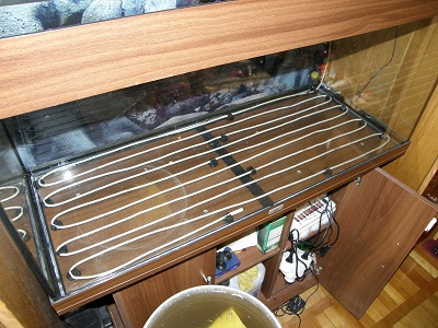 Штатный ювелевский фильтр был вырезан. Аквариум был перезапущен с новым внешним Atman CF1200 и грунтовым кабелем-обогревателем с термореле.