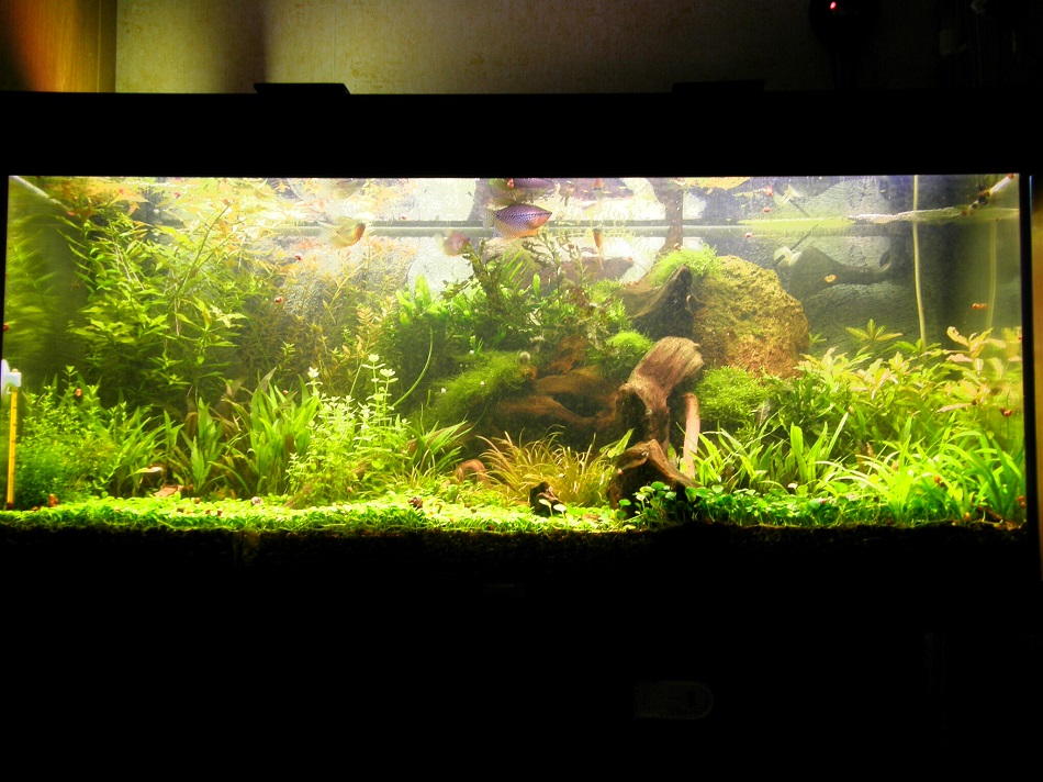 В таком виде мой аквариум просуществовал 1,5 года. За это время часть рыб отошла в лучший мир из-за 2-х случаев "манки" (ихтиофтириоз и оодиниоз).