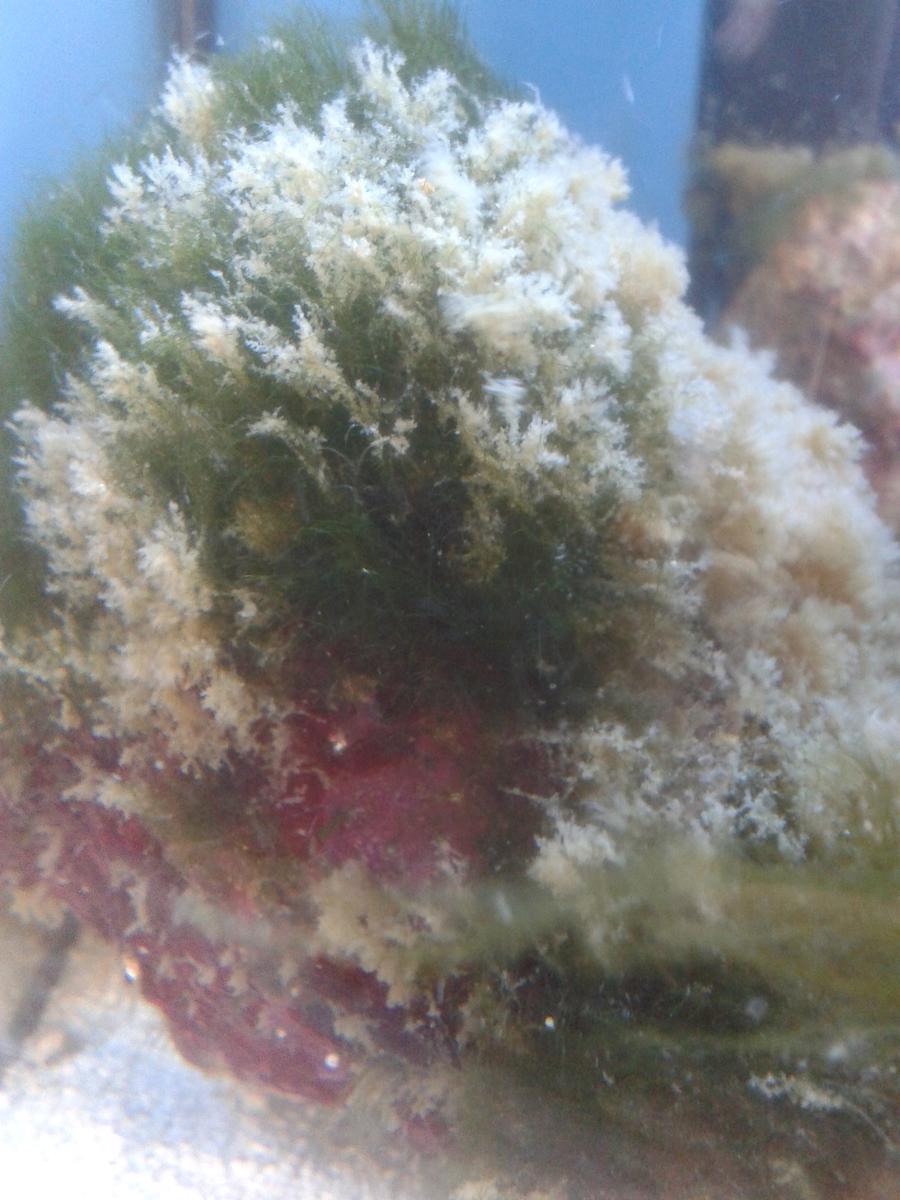 Здравствуйте ! После того как обнаружилось что я целый год недосаливала воду в морском аквариуме, я приобрела прибор измеряющий плотность и соленость воды привела в норму. После этого на живых камнях у меня выросло вот это чудо. Что это? С этим бороться или так и надо ?