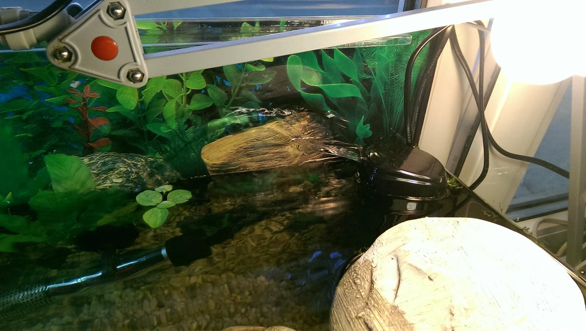 Через некоторое время, мое внимание переключилось больше на рыбок... те которые появились первыми, гоняли новеньких, вплоть до того , что те прятались на островке у черепахи, лежали отдыхали от нападок, поначалу я их спихивал с него, потом заметил что отдохнув, они сами с него спрыгивали ))