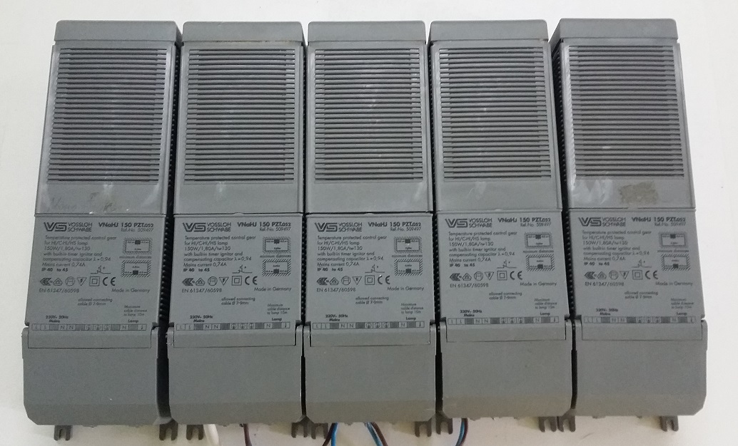 Поджиг ламп МГ осуществляют моноблочные ЭМПРА VOSSLOH SCHWABE (VNaHJ 150PZT.052). Соответственно по одной ЭМРПРа на каждую МГ лампу. размеры ЭМПРА: длина -249 мм, ширина - 72 мм, высота - 61 мм. Вес - порядка 3 кг (каждая).