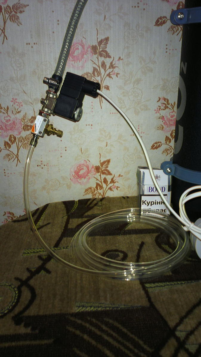 Переход с редуктора на электроклапан реализован специальным армированным углекислотным шлангом высокого давления на хомутах.