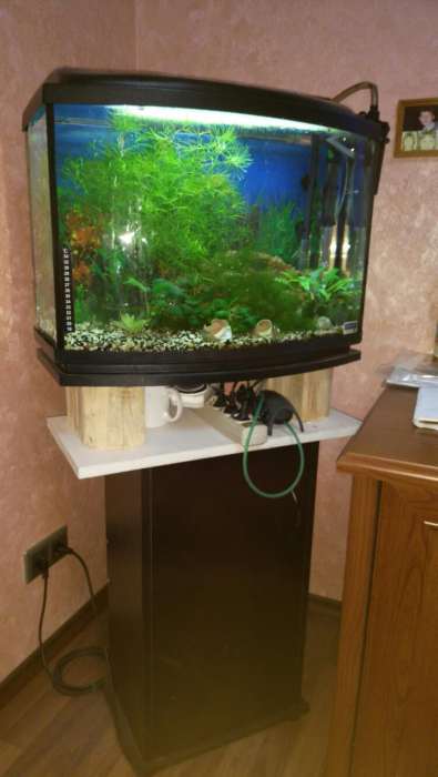 Аквариум действующий 56л 60*23(28)*40 с тумбой 60*28*84 (длинна, ширина, высота), обогреватель, компрессор, внешний фильр, поддон, подсветка, керамическая коряга и т.б. рыбы - 5 мраморных гурами. Продаю в связи с закгрузкой по работе и командировками. 1100 грн. аргуметированный ТОРГ! Смотреть забирать - Берковцы (конец Виноградаря).