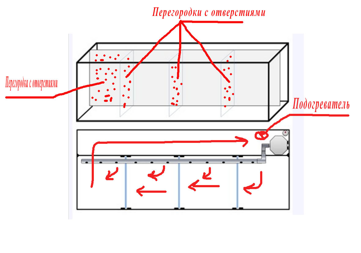 Я бы сделал так, сифонить придется примерно раз в 1 месяц, полная чистка раз в квартал. Больших зазоров между стеклами нет нигде.