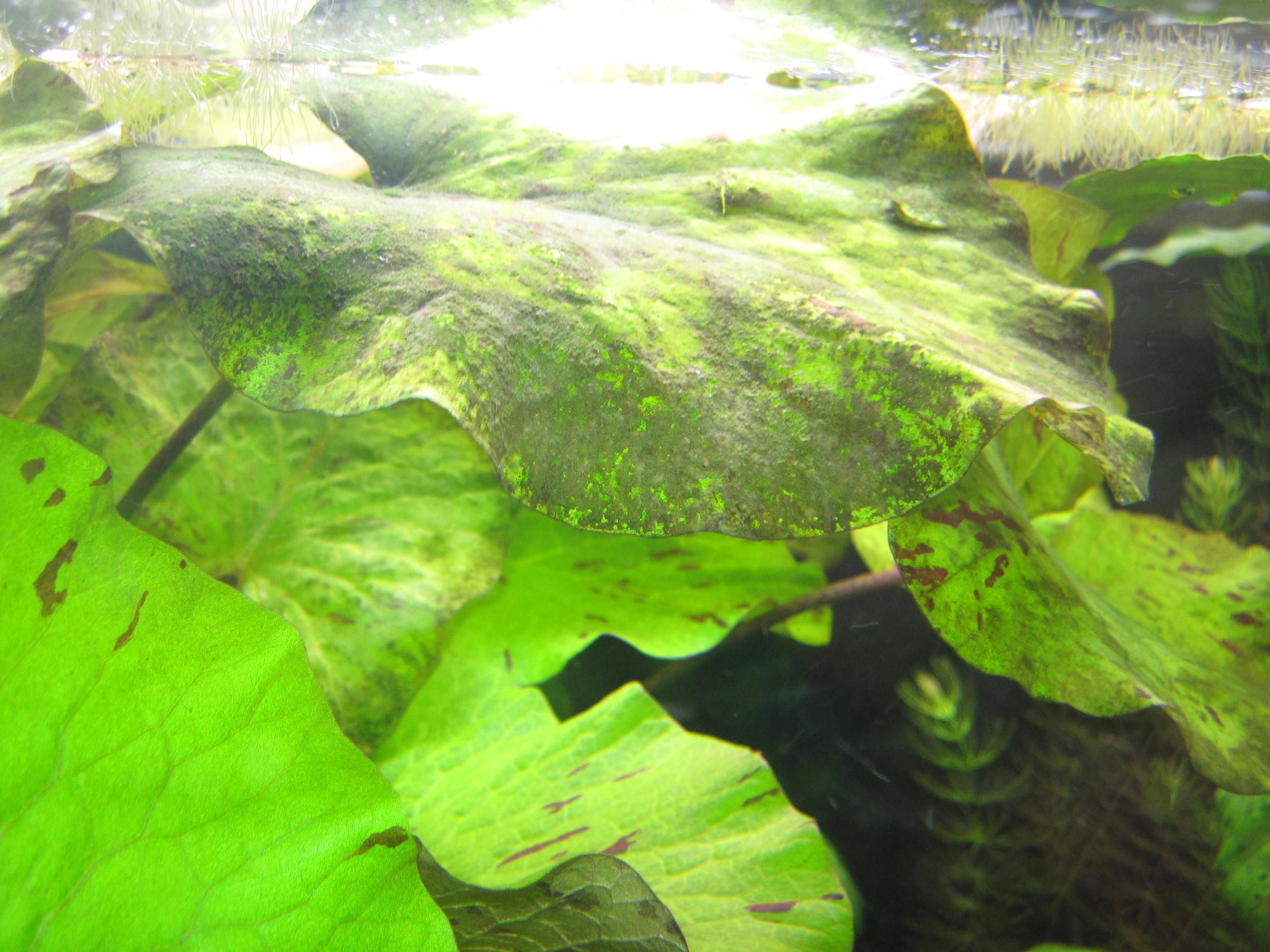 А то я уже и четыре лампы именно для растений купил (Sylvania GRO-lux), а толку не особо. Заметил только, что листья, на которые не падает прямой свет (где-то боковые) - те всегда чистые. А листья, которые около ламп - они страдают этими коричневыми водорослями.