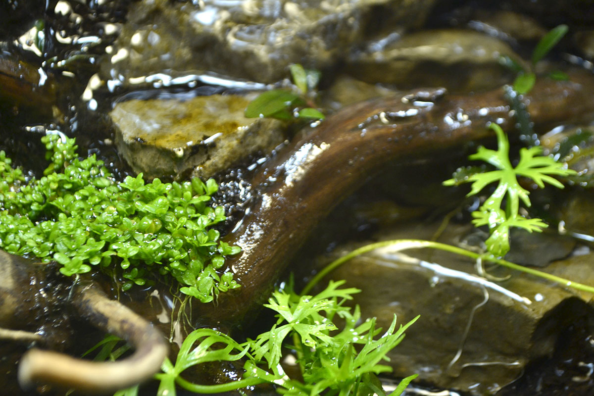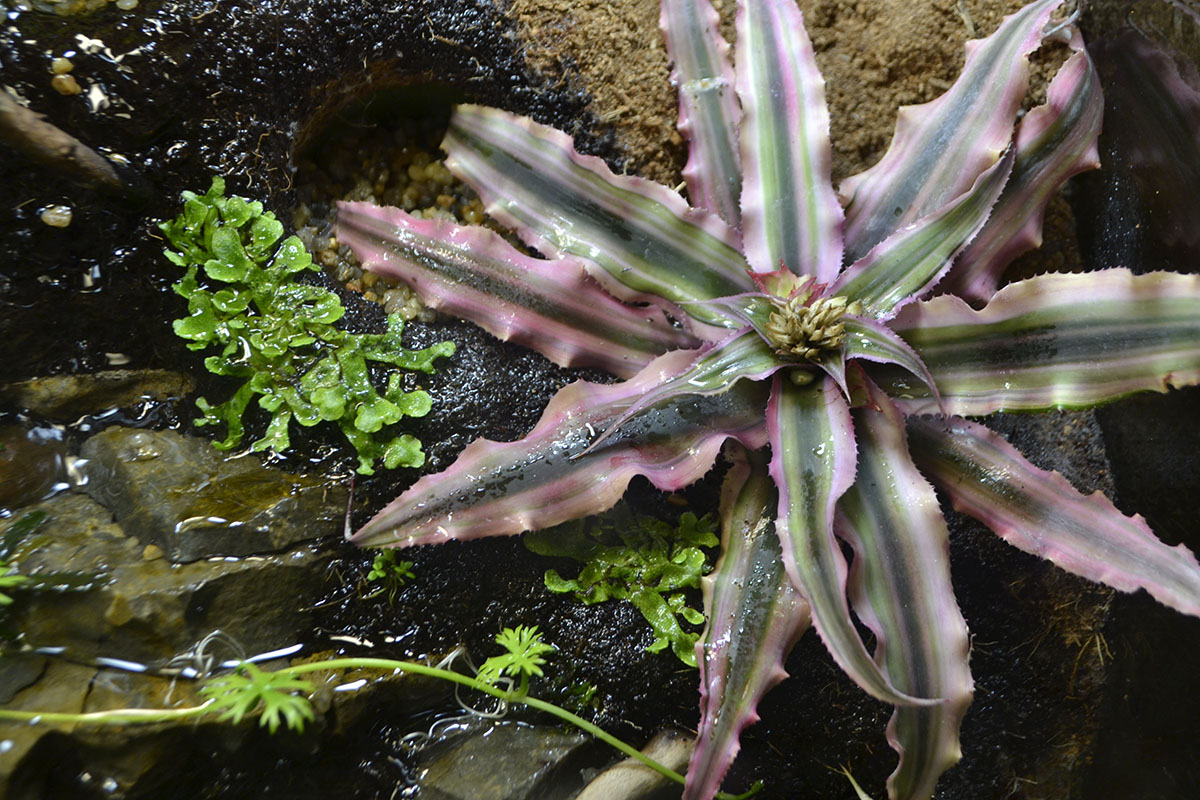 Добавив анубіас куплений на пробу в зоомагазині. Молодий листок напевно не сприйняв переходу на сушу - декуди почав чорніти, а от старі тримаються без проблем. Добавив атмосферну червону тілландсію та рожевий криптантус (композиція дуже оживилась). У користувача Vals закупився мохом і буцефаландрами. Порозкладав усе в зоні водоспаду для розведення. Буцефаладри нове місце проживання сприйняли добре - за тиждень кожна видала новий листок. Мох також зазеленів молодими паростками. В водяну частину ще добавилась кокосова шкарлупка з фонтанусом яку отримав бонусом. Ще хочу докупити анубіас coffeefolia і папороть Bolbitis і крупніших буцефаландр (не сподівався що вибрані сорти такі дрібненькі).