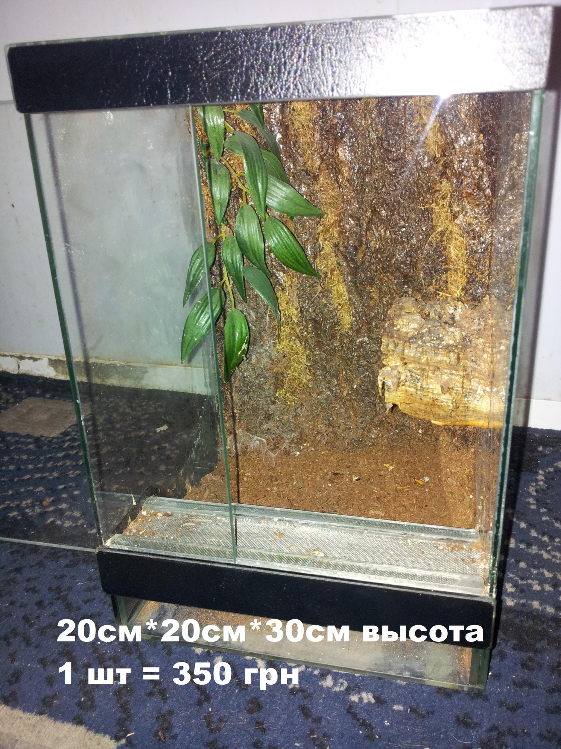 2) 25*25*25см - для наземников. Проточная вентиляция, дверца сдвижная, с задним фоном. В наличии 2 шт, цена 350 грн/шт.