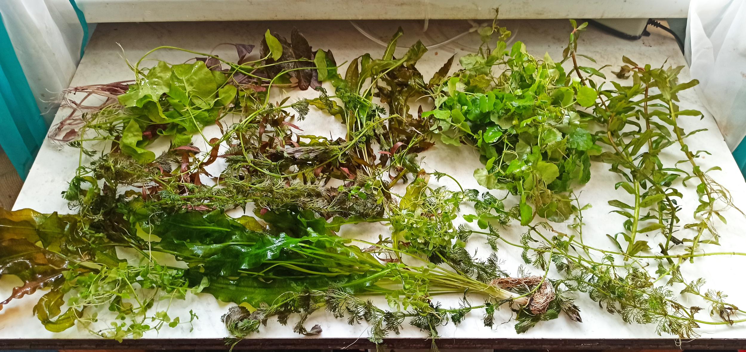 5 Нимфеи,3 Нимфеодиса. Огромный пучок Гидрокотила Белоголовая, 4 Апоногетон и один очень взрослый куст и всё остальное.