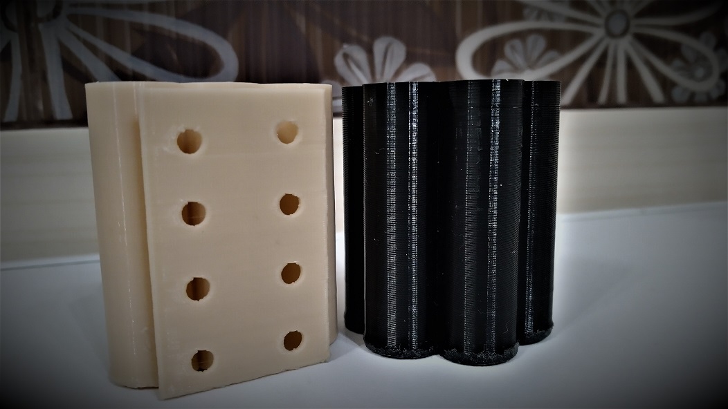 Це мої перші два екземпляри, так би мовити, прототипи, на яких я тренувався, підбирав параметри друку, підганяв конфігурацію.