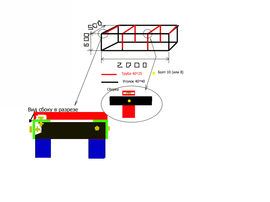 Прочитал в сети совет что лучше, проще, дешевле собирать металлокаркас на болтах. Вот набросал схемку.... Как думаете жизнеспособно? Планирую на следующей недели собирать. Сверху хочу положить кухонную столешницу. Жду Ваших комментариев и советов.