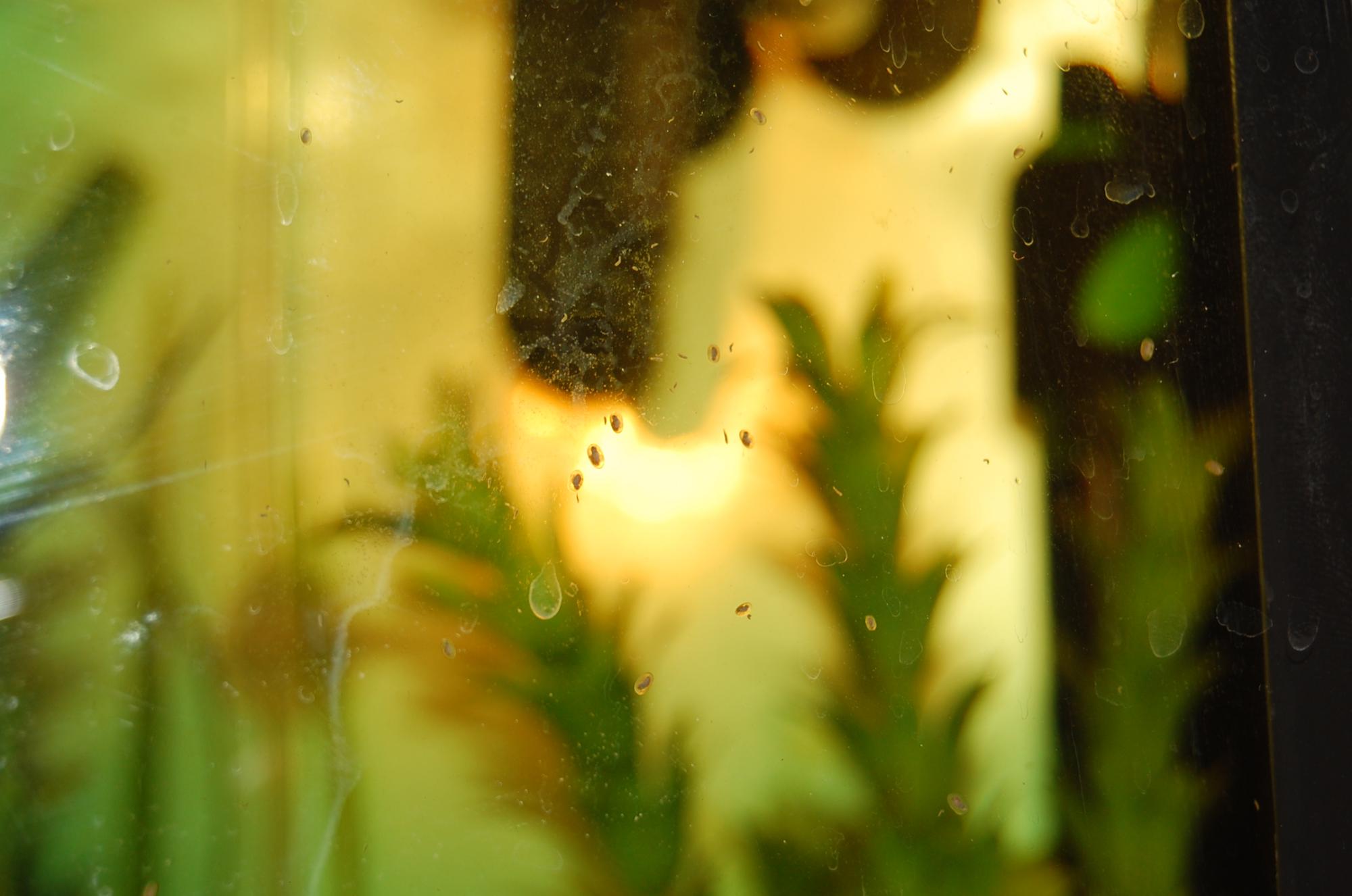 подскажите, что это такое и что с ними делать?? размер 1,5-2,0 мм.при близком рассмотрении представляет собой личинки подвижные, закрепляются на стекле. снаружи укрыты прозрачным панцирем. пальцем можно раздавить.