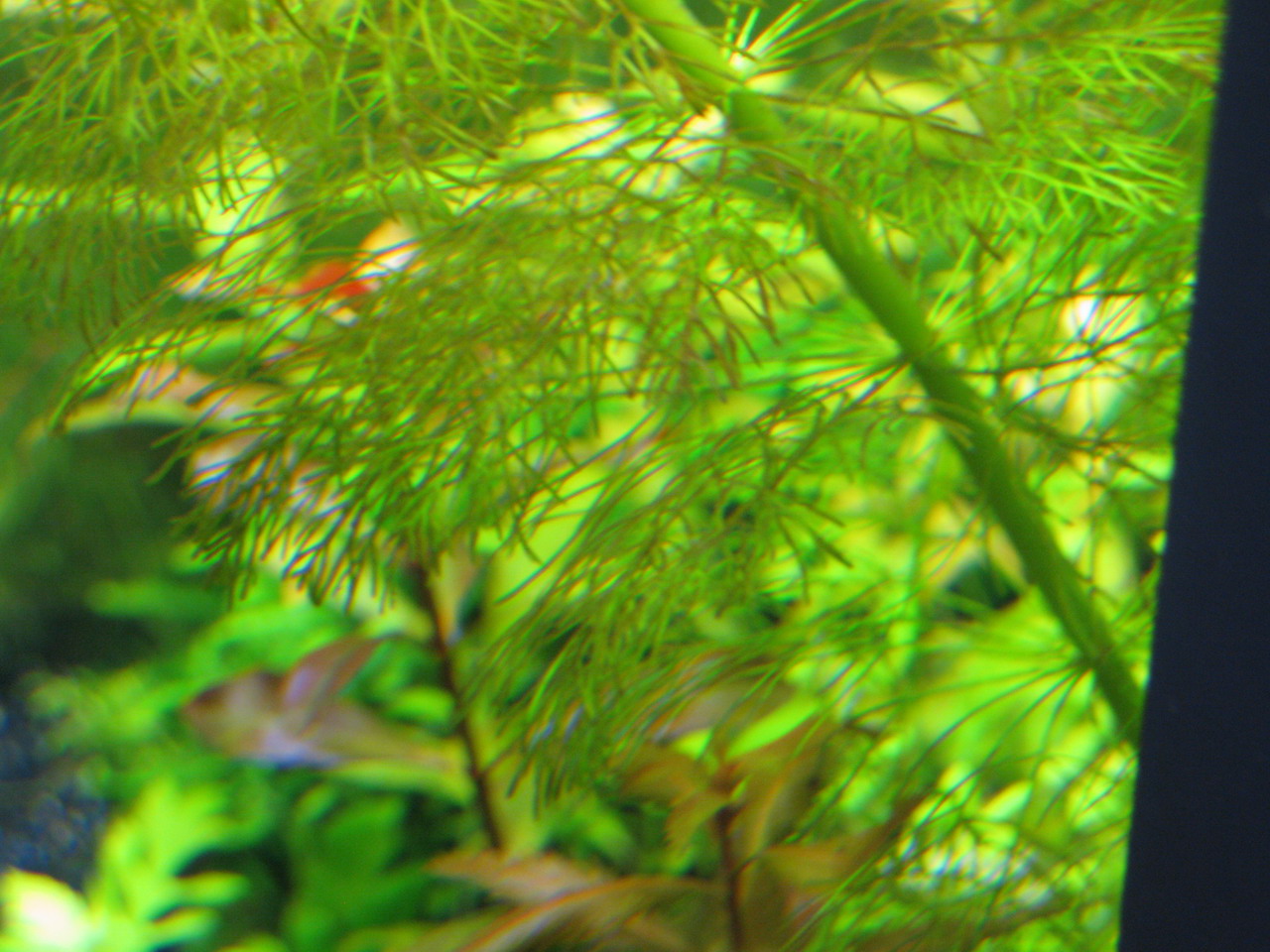 Проблема видна уже и невооруженым глазом на фото ( это самые лудшие что смогла сделать). На мой взгляд это нитчатка на хемиантусе, на мохе не понятно что, и на лимнеофилле, прозерпинаке и людвигии красностебельной бурые и зеленоватый нелет (стирается пальцем) ??