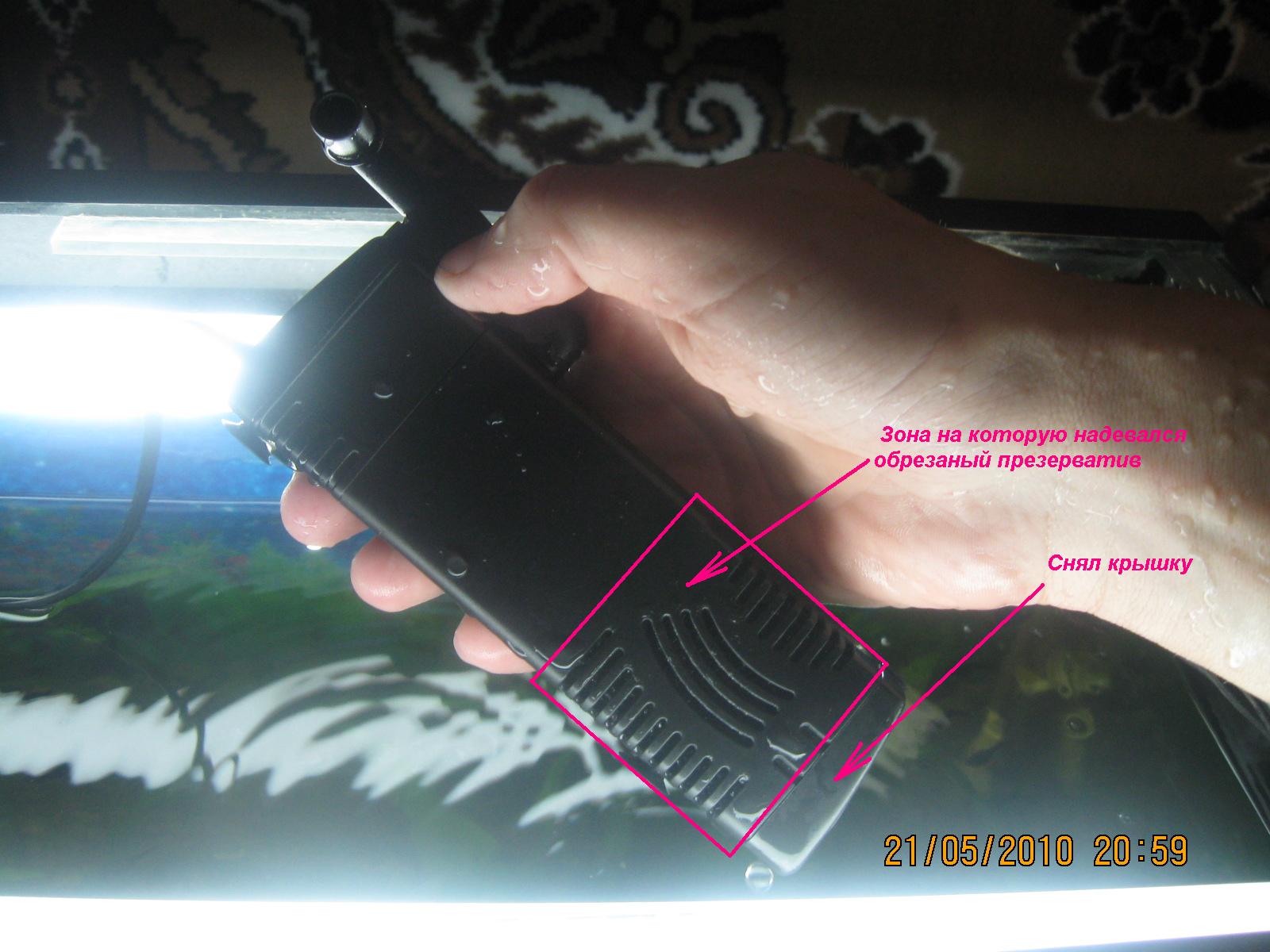Грязь из дна я изымал с помощью внутренего фильтра SunSun JР- 012F и презерватива. В презервативе оторезал конец (глухую часть) и с помощью него закрыл боковые отверствия, в фильтре снял крышку.