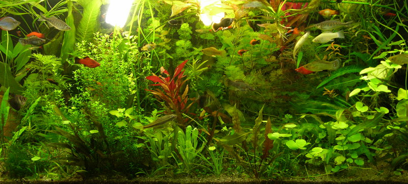 3. Удобрения не использую. В аквариуме много рыбы. Подается СО2 из браги - 15-25 мг/л в сутки, перемешивает миксер (проточный реактор от Ferplast).