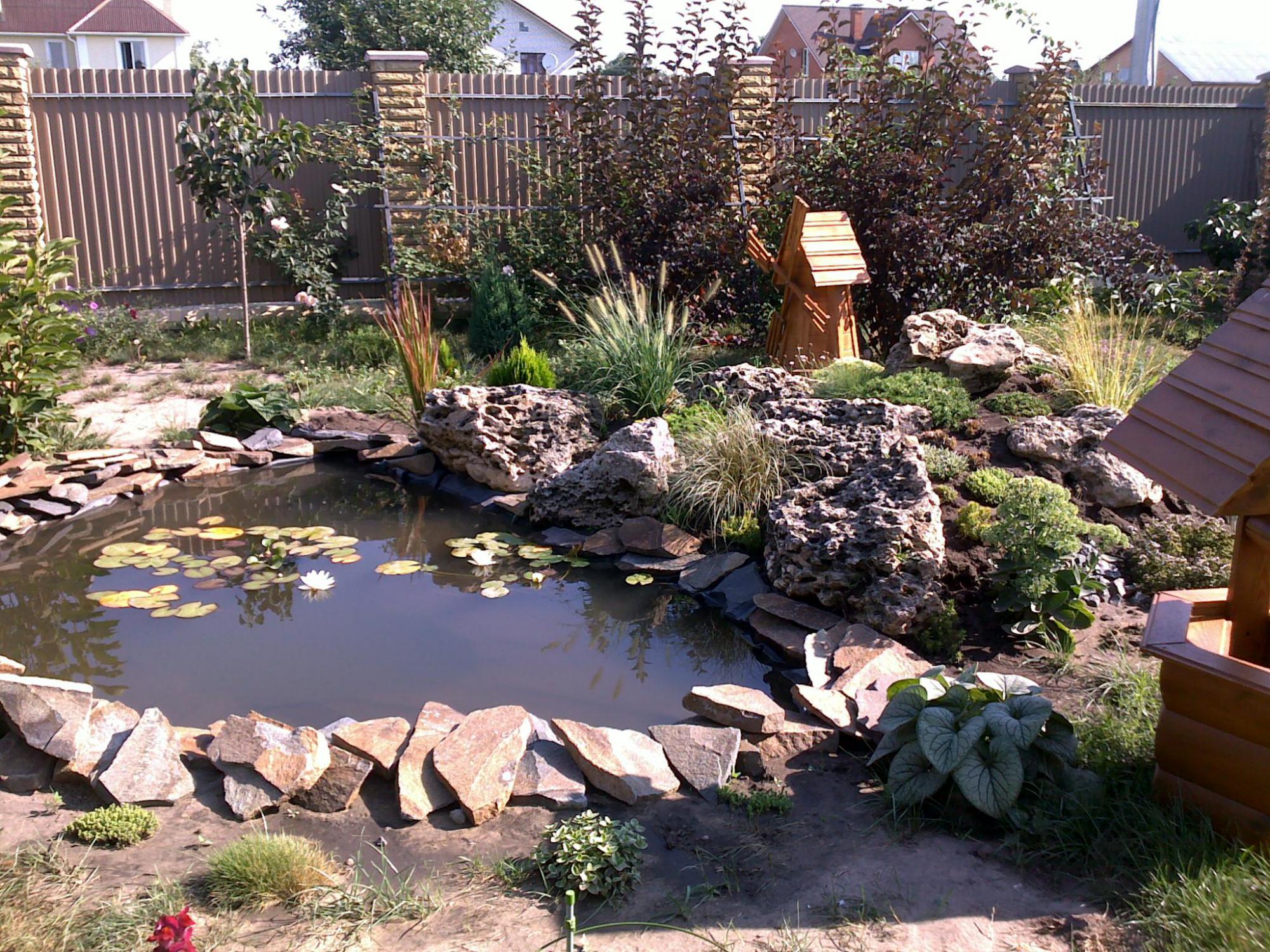 Кстати сейчас маленький пруд (№2) он стоит с водой больше месяца, но я там еще никакую фильтрацию не делала. Пока прозрачный. Но там нет кои, атолько 2 нимфеи. Планирую поставить Гарденовский фильтр(предназначен на 15 куб м и 11Вт УФ), он у меня остался по ненадобности когда строили первый пруд