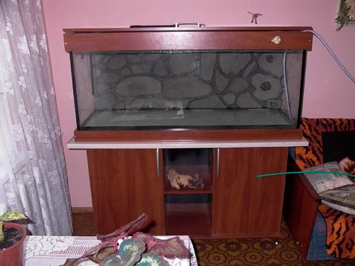 А це акваріум вже заповниний водою, фон практично незмінив свій вигляд.