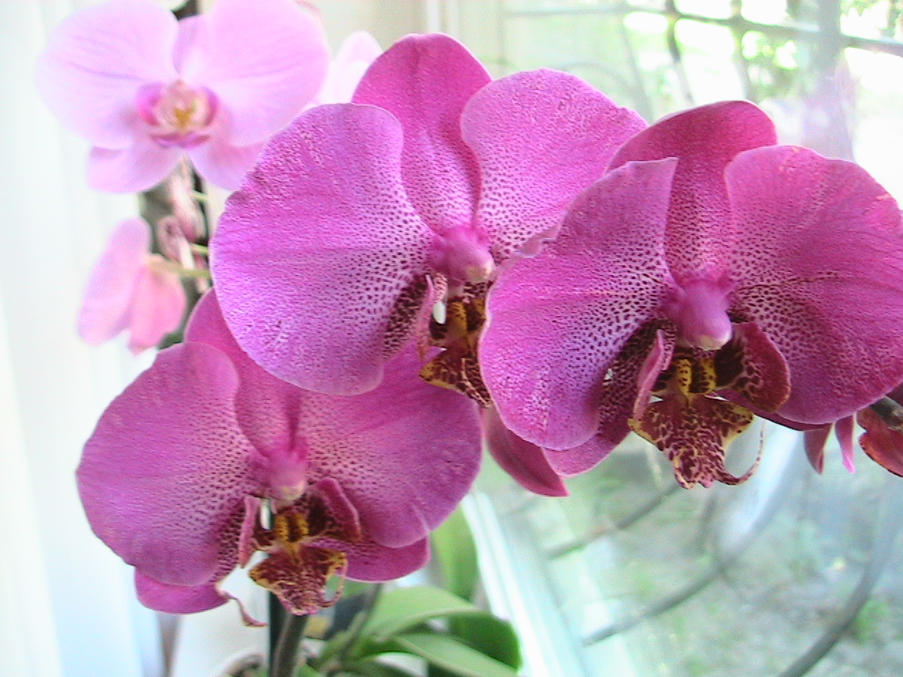 Часть орхидей у меня в доме на окнах, а часть - на балконе. Пока с фаленопсисами все хорошо, не считая одного, который из заказа пришел и внушает сильные сомнения в том, что выживет. Из неприятностей - на дендробиуме борюсь с клещиком, никак не вытравлю гада. И одна потеря - погиб мильтониоопсис, очень красивый ...