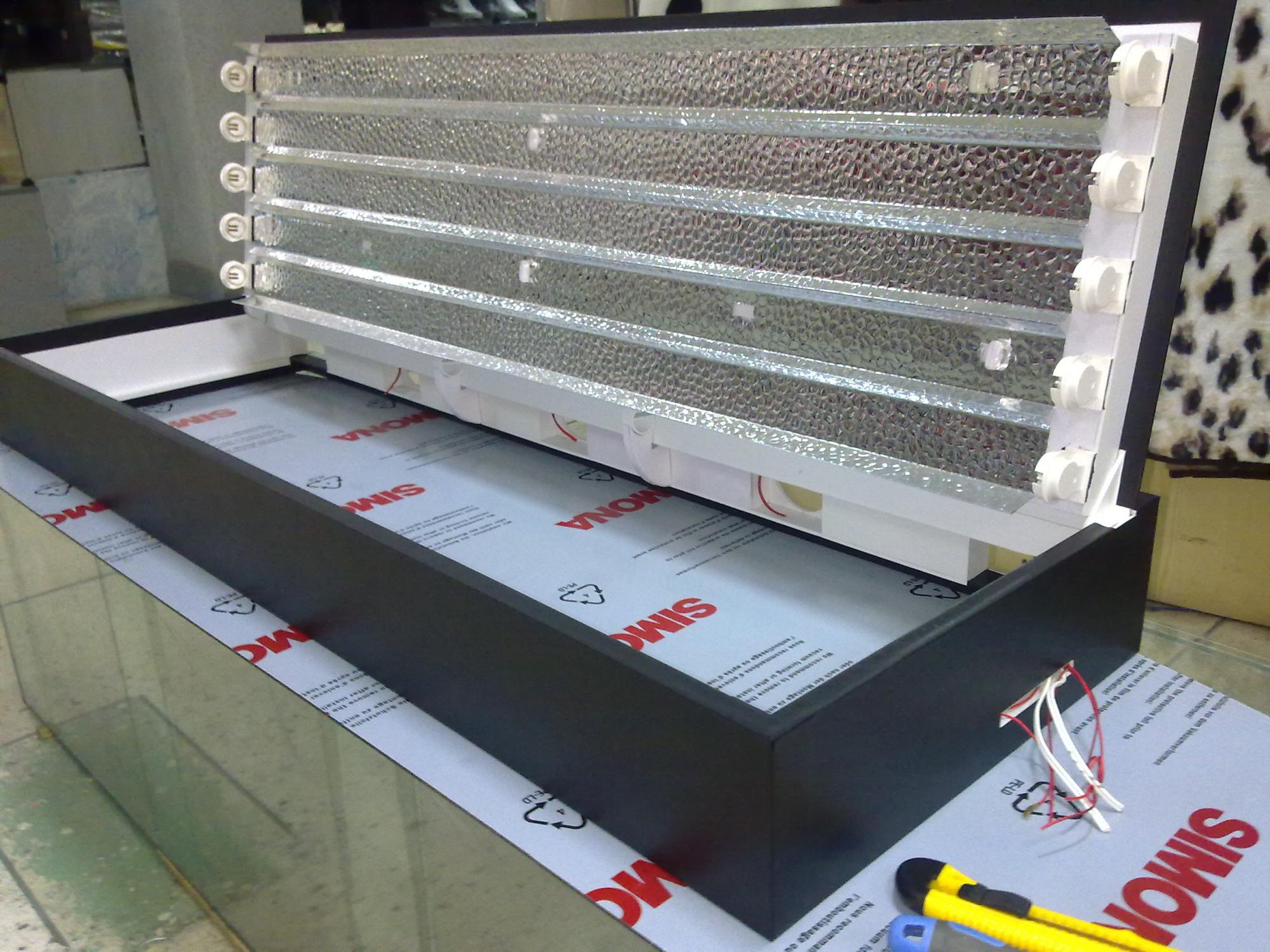 Могу предложить светильник за475грн. Лампа Т5 8Вт, 24 светодиода, куллер 8-ка, адаптор встроен, гнездо для штекера 220V, три вкл.(диоды-куллер-лампа),светодиод-индикатор сети, крепление на борт аквариума при помощи регулируемого по высоте и углу наклона кронштейна, размеры этого прибора:L-411mm,h50mm,S92mm. Если возникают еще вопросы, пожалуйста... .