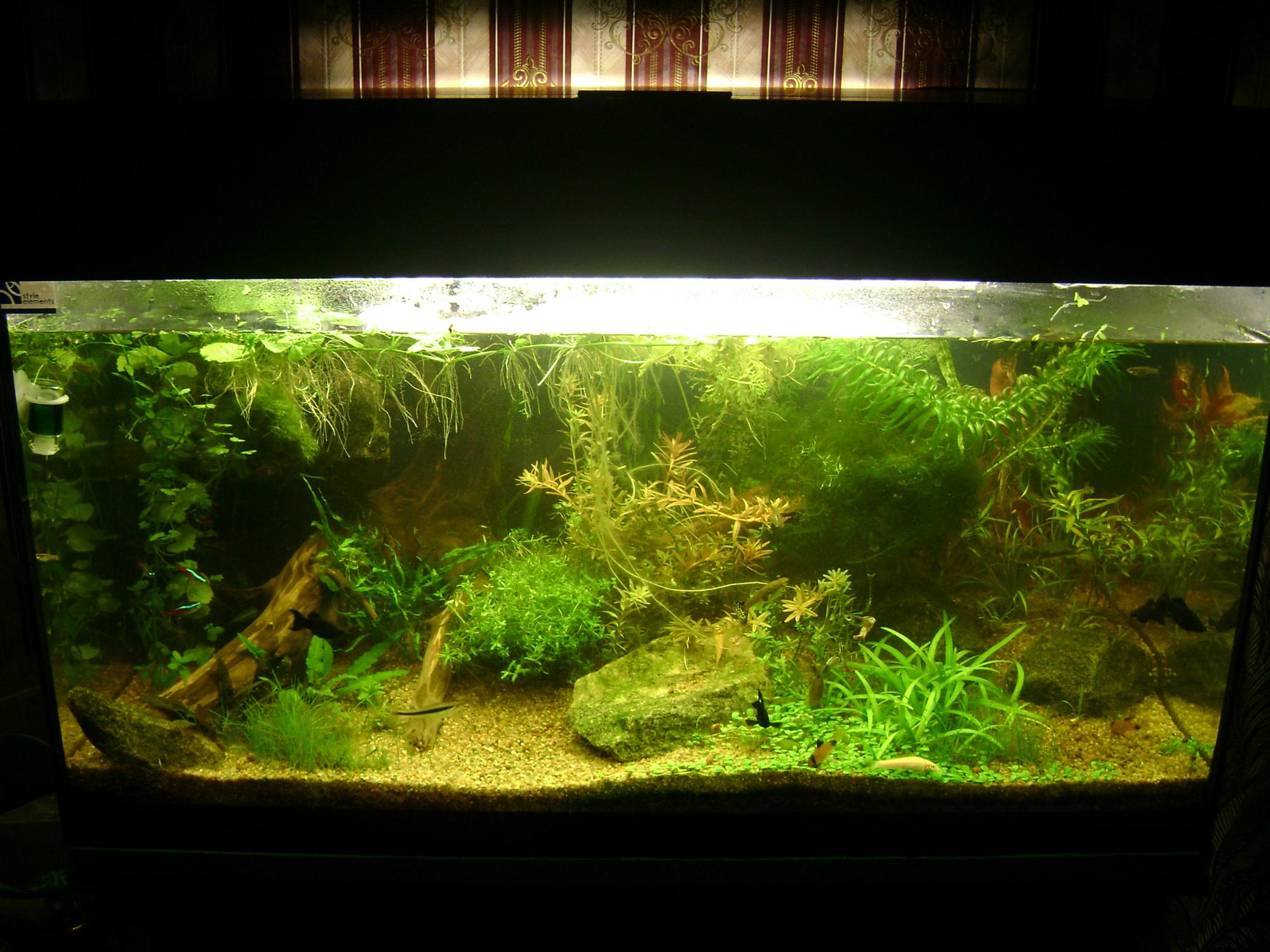 красивый аквариум но каменюки те жуткие - убрать однозначно. И травы побольше всякой разной разнообразной , и рыб побольше. Типа скаляров полосатых .
