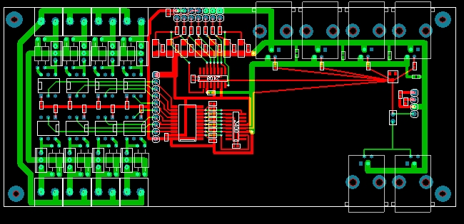 К одному контроллеру можно подключить несколько таких плат (блок питания делается только на одной). Все платы соединяются с контроллером по шине 1-Wire (обычный телефонный/модемный четырехжильный кабель).