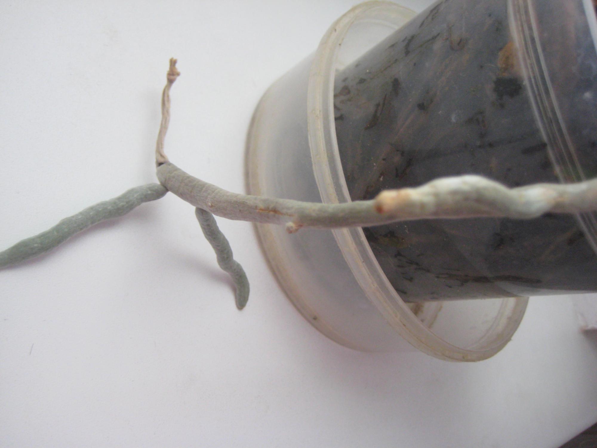 Добрый день, в прошлом году на 8 марта мне подарили орхидею,она обычная чисто белая. Спустя несколько дней цветы обсыпались, и с того времени она не цветет, я раз в неделю устраиваю ей душ,ставлю на ночь в воду. Но она не хочет цвести, и корни подсохают...Подскажите что происходит,возможно она болеет?