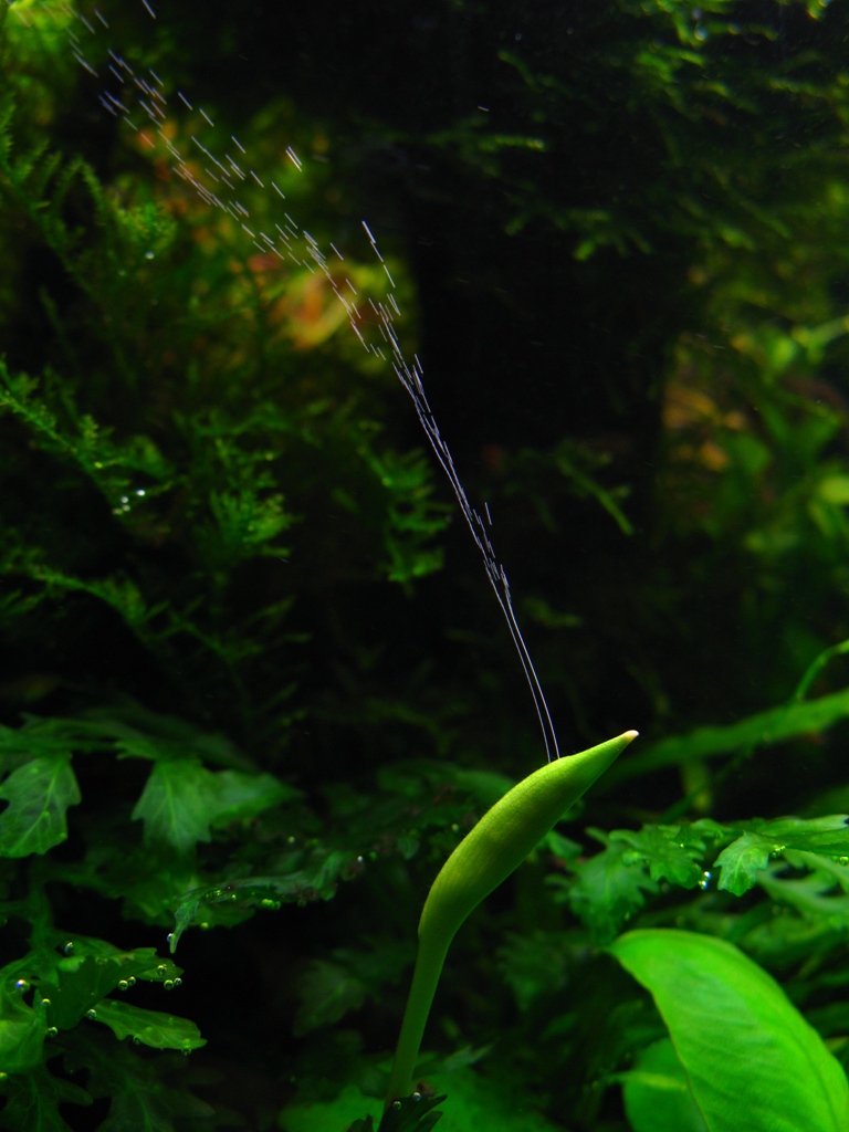 Первый раз что-то зацвело - радости "полный аквариум".  У меня недавно гетерантера остр. под водой бутоны выбросила...я все ждала-ждала(ну прям аки дите малое  ), когда распустятся...эх, так и не распустились... Зато теперь цветет еще "нечто пока мной неопознанное", цветы надводные. "Мелочь - а приятно".  Думаю, тебя травинка еще не раз порадует: аквариум красивый, растения здоровые, условия благоприятные...и хозяин всего этого (как мы выяснили) - добрый.  Грех не зацвести!