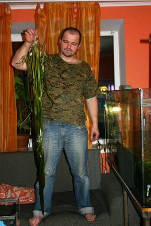 Причина перезапуска хочется стремиться к лучшему! (было много нитчатки которая приросла к грунту и в пушистых растениях( 70% растений пришлось выбросить при парился выковыривать) выбрать не возможно. Нитчатка не прогрессировала , растения перли так як треба особенно гигантская валиснерия за неделю выпустила около 9 новых отростков ширина листа с 1см до 2,5 см изменилась, причина ( установил СО2 пока на браге))