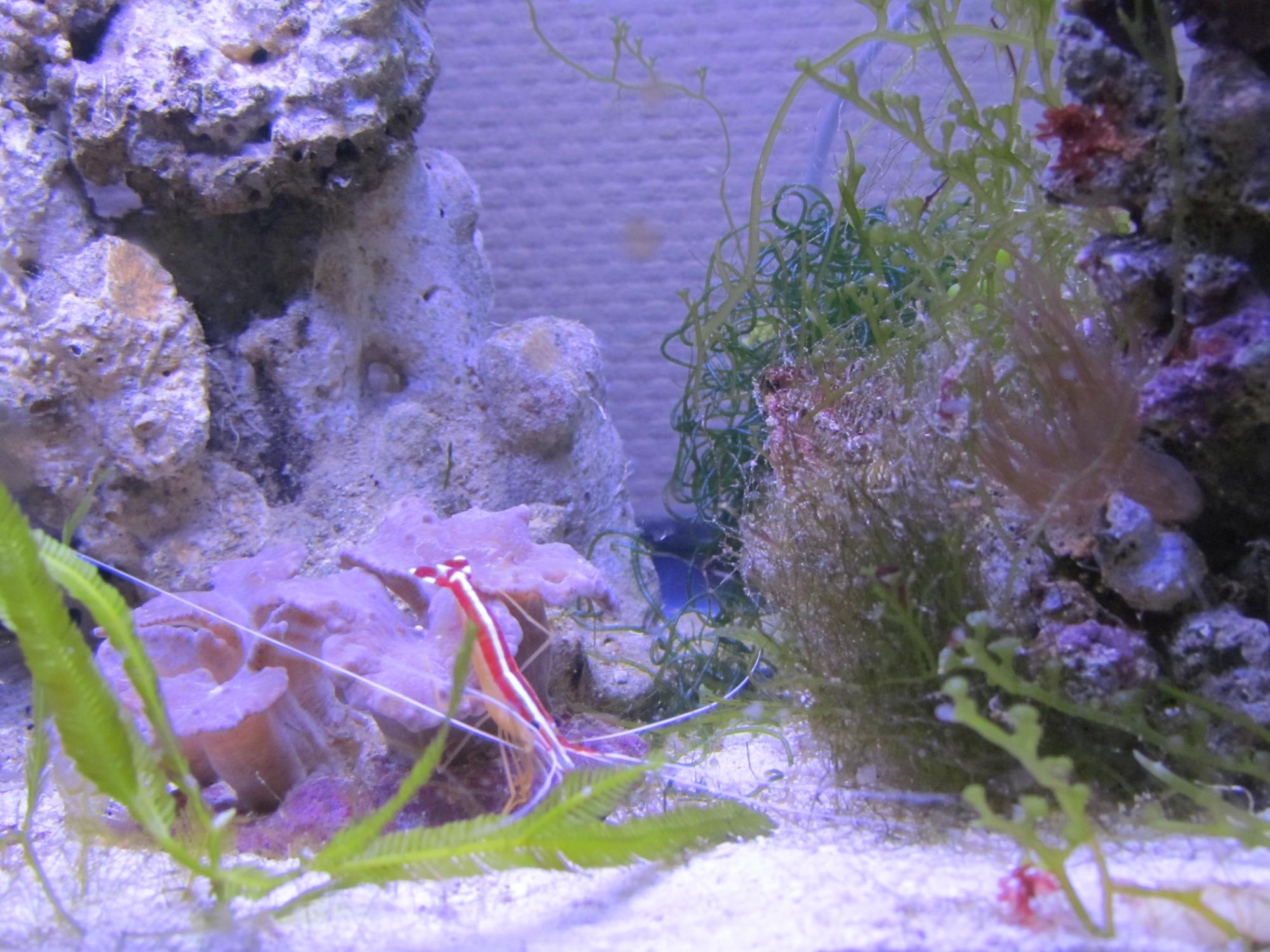 С Черного моря (Железный порт) приехала креветка и раки отшельники. Адаптация прошла за сутки. Со второго дня берут артемию и что-то щиплят. Креветка с икрой. С креветкой - доктор не конфликтует. Отшельники постоянно прячутся - получить качественное фото не удалось. Будем ждать удобный момент. А креветке нравится позировать. Выкладываю.