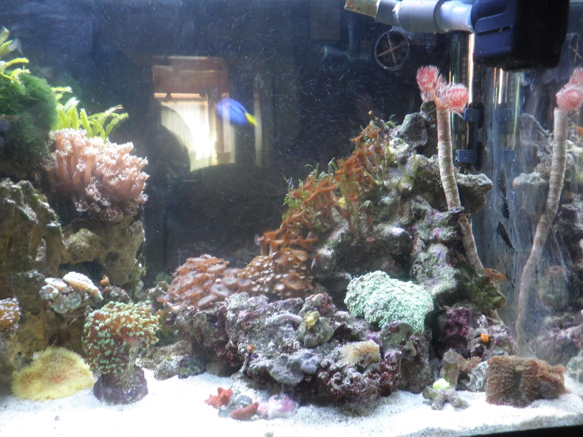 Так же были до этого,на протяжении 2х месяцев куплены:Акропора,но она почему то осыпалась-так что пока нечем хвастаться...Гониопора-чувствует себя великолепно...Красный веерный червь-тоже хорошо себя чувствует...Heteractis malu-но пропала...бегала-бегала по всей акве и пропала...2 Саркофитона маленьких(я их так обозвал)но один как то не понятно себя ведет...все время лежит,но надувается...и колония тубостерий...