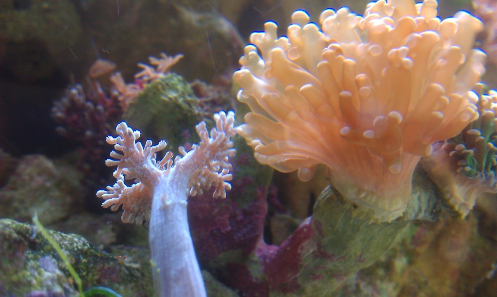 Так там уже подниматься нечему. Полипы и покровная ткань на скелете. Все облетело, должен остаться белый скелет. Потом скелет потихоньку темнеет и обрастает Каролиной, и всякими водорослями. Все кораллы с мелкими полипами ( которые я видел ) нежные слишком. Возможно есть какие-то СПСы, которые могут с мягкими и рыбами жить, пусть опытные товарищи посоветуют.