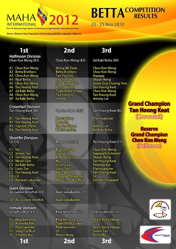 448 Show Betta Entries from Malaysia, Singapore, Thailand and Indonesia.