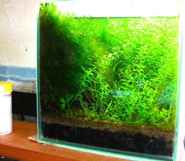 Природный запуск аквариума на 8 литров, маленький такой кубик.